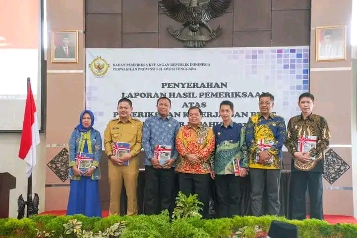 Bupati Koltim, Abdul Azis menerima LHP Kepatuhan atas Belanja Daerah tahun 2022 dan 2023 dari BPK Sultra.