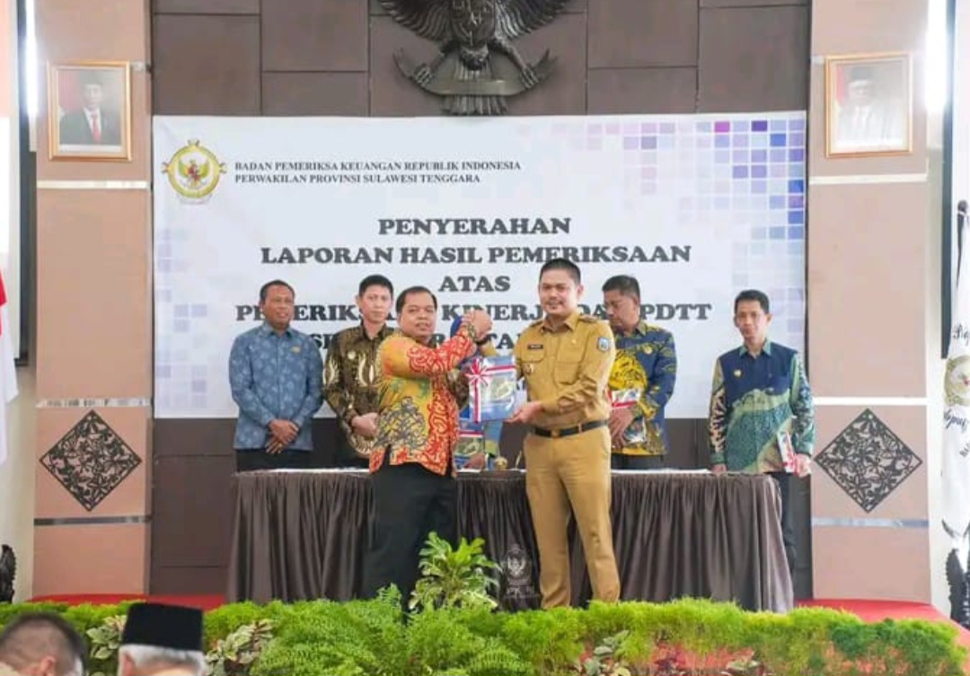 Bupati Koltim, Abdul Azis menerima LHP Kepatuhan atas Belanja Daerah tahun 2022 dan 2023 dari BPK Sultra.