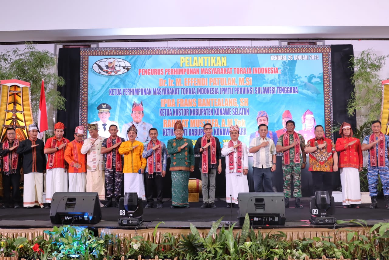 Kendari, Sinarsultra.com – Pengurus Perhimpunan Masyarakat Toraja Indonesia (PMTI) Provinsi Sulawesi Tenggara (Sultra) masa bakti periode 2023-2028 resmi dilantik atau kukuhkan pada Jumat, 26 Januari 2024.