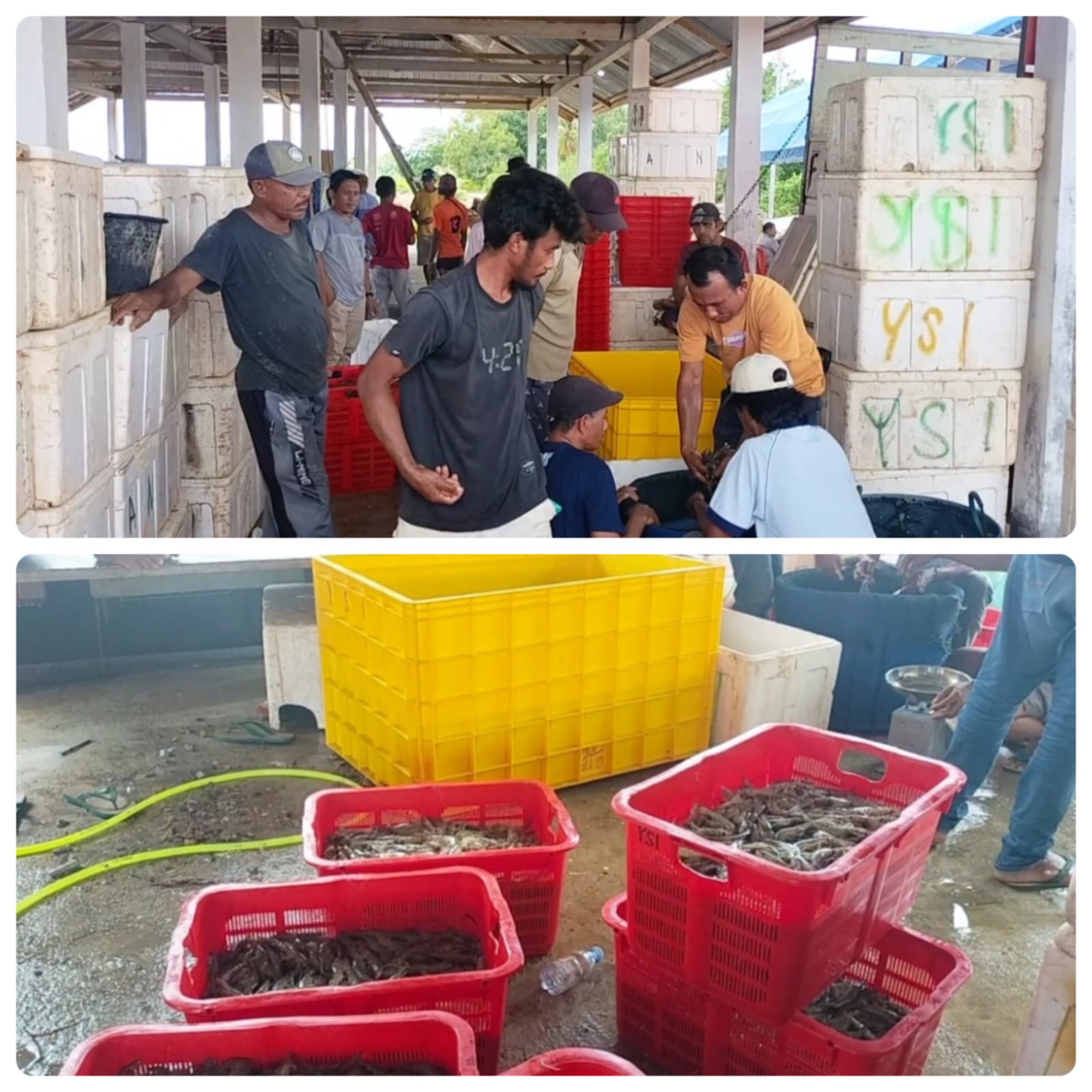 Panen udang vaname yang merupakan hasil dari program Ketahanan Pangan (Ketapang) dengan menggunakan Anggaran Dana Desa (ADD) tersebut, dilaksanakan di tambak milik Pemerintah Desa (Pemdes) Bonea, Rabu 31 Januari 2024,