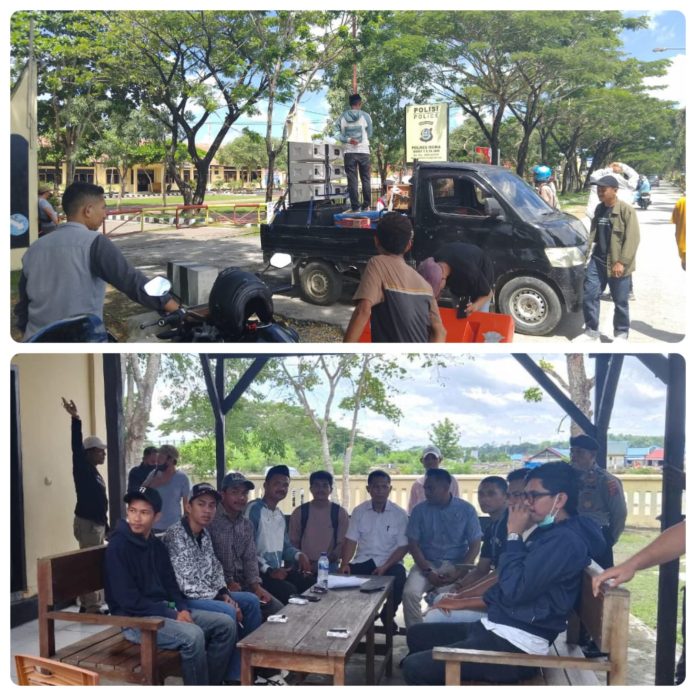 Aksi unjuk rasa yang berlangsung damai tersebut dilakukan guna meminta pihak Polres Muna, segera menuntaskan kasus penipuan dengan modus penggadaan uang yang di alami oleh saudara inisial BS.