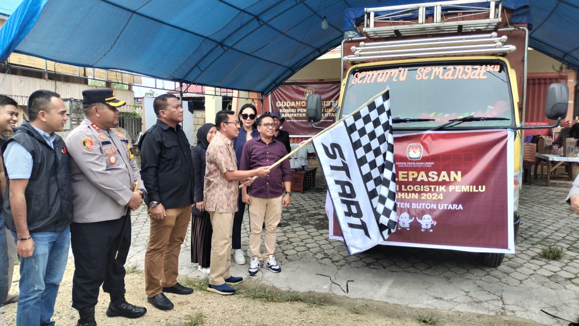 Buranga, Sinarsultra.com – Bupati Buton Utara (Butur) Dr. H. Muhammad Ridwan Zakariah, didampingi Ketua Komisi Pemilihan Umum (KPU) Provinsi Sulawesi Tenggara Dr. Asril, Kapolres Butur AKBP. Herman Setiadi, melepas dengan resmi kendaraan pengangkut logistik Pemilu 2024 Kabupaten Buton Utara.