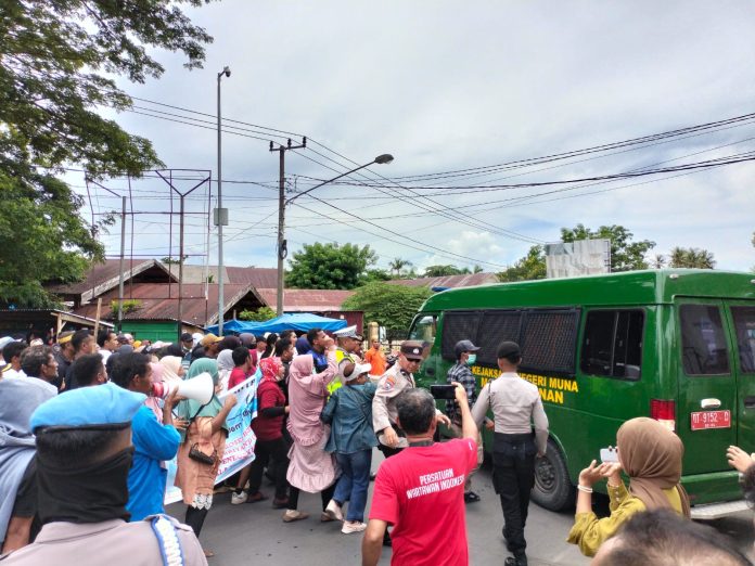Raha, Sinarsultra.com – Ratusan warga Desa Lagasa yang tergabung dalam Gerakan Rakyat Untuk Keadilan (GRK), kembali melakukan aksi unjuk rasa di Depan Kantor Pengadilan Negeri (PN) Raha, Senin 4 Maret 2024.
