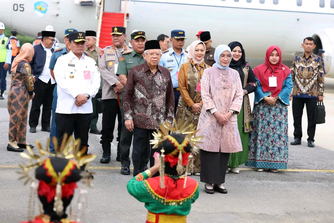 Kedatangan Wapres Ma’ruf Amin beserta Ibu Wury Ma’ruf Amin dan rombongan disambut langsung oleh Pj Gubernur Sulawesi Tenggara (Sultra) Andap Budhi Revianto dan jajaran Forum Koordinasi Pimpinan Daerah (Forkopimda) Tingkat I Provinsi Sultra. Tampak hadir Kapolda Sultra, Pangdam XIV/Hasanuddin, Danrem 143/HO, Wakapengti, Aspidum Kejati, Kabinda dan Bupati Konsel.