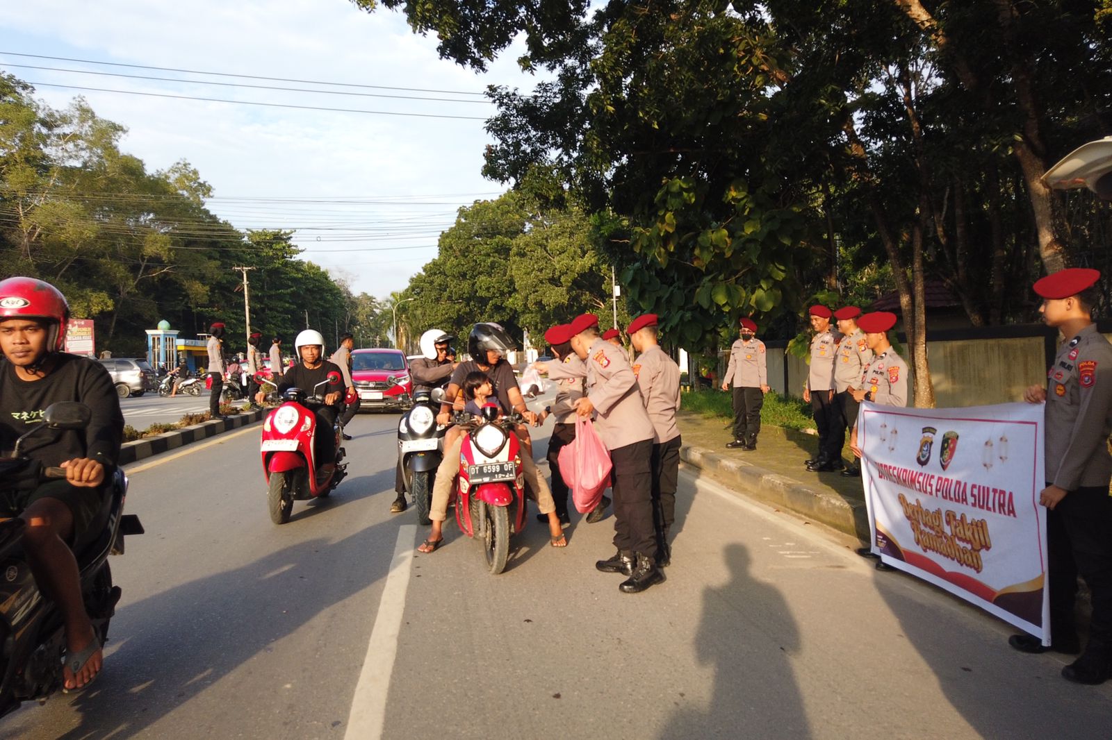 Kegiatan ini dipimpin oleh AKP Sarwo Edy (Dit Reskrimsus) yang berlangsung di perempatan kantor statistik, samping Mapolda Sultra. Sebanyak 500 paket takjil dibagikan kepada pengendara motor dan masyarakat yang melintas di lokasi tersebut.