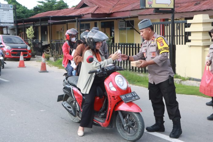 Kendari, Sinarsultra.com – Dalam semangat berbagi dan kebersamaan di bulan suci Ramadhan, Personel Polresta Kendari menggelar kegiatan berbagi takjil untuk warga. Sebanyak 100 paket takjil dibagikan kepada masyarakat sebagai bentuk kepedulian dan rasa persaudaraan.