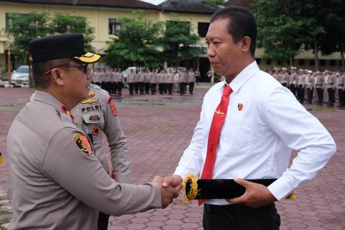 Kendari, Sinarsultra.com – Wakapolda Sultra, Brigjen Pol. Dwi Iriyanto memberikan penghargaan kepada 42 orang personel Polda Sultra serta 1 orang dari ASN Lapas Kelas II.A Kendari di Lapangan Apel Presisi, Selasa 23 April 2024.