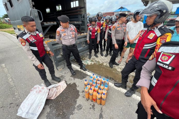 Kendari, Sinarsultra.com – Seorang pelaku peredaran minuman keras (miras) tradisional jenis Ballo berhasil diamankan personel Satuan Tugas (Satgas) Preventif Direktorat Samapta (Ditsamapta) Polda Sultra, Jumat 17 Mei 2024.