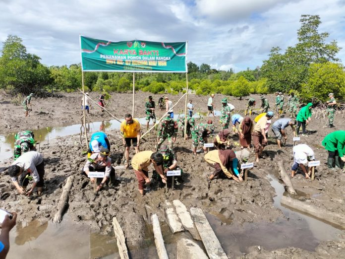 Kodim 1416/Muna, Gelar Karya Bakti Penanaman Pohon Mangrove pada HUT Kodam XIV/Hasanuddin.