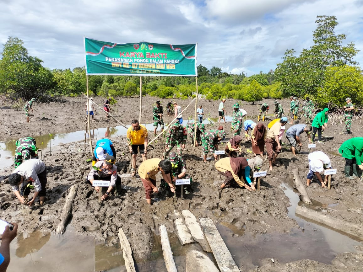 HUT Kodam XIV/Hasanuddin Ke-67, Kodim 1416 Muna Gelar Karya Bakti Penanaman Pohon Mangrove