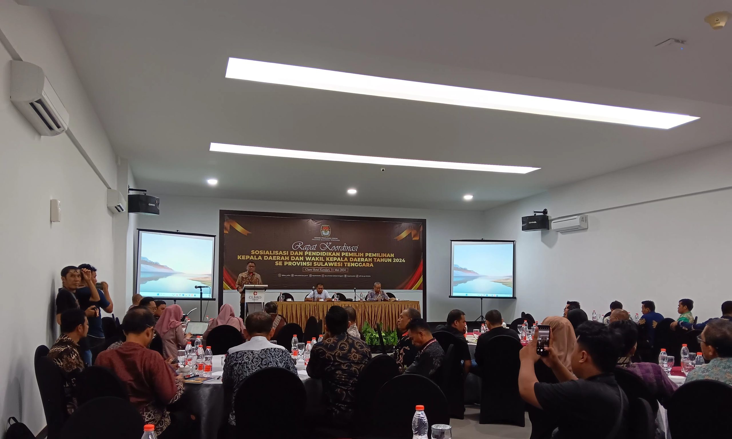KPU Sultra menggelar rapat koordinasi sosialisasi dan pendidikan pemilih Pilkada tahun 2024.