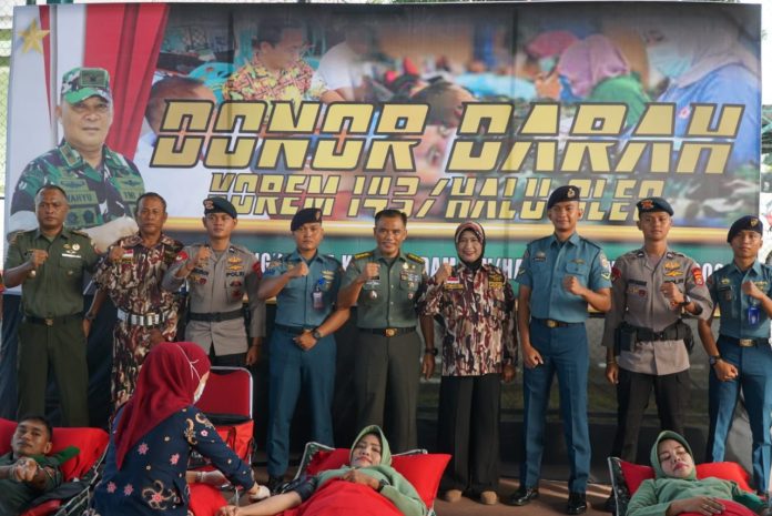 “Kegiatan Donor Darah yang kita laksanakan ini melibatkan seluruh prajurit jajaran Korem 143/HO, PNS, PERSIT, TNI AL, TNI AU, POLRI, Veteran dan juga FKPPI,” ucapnya.