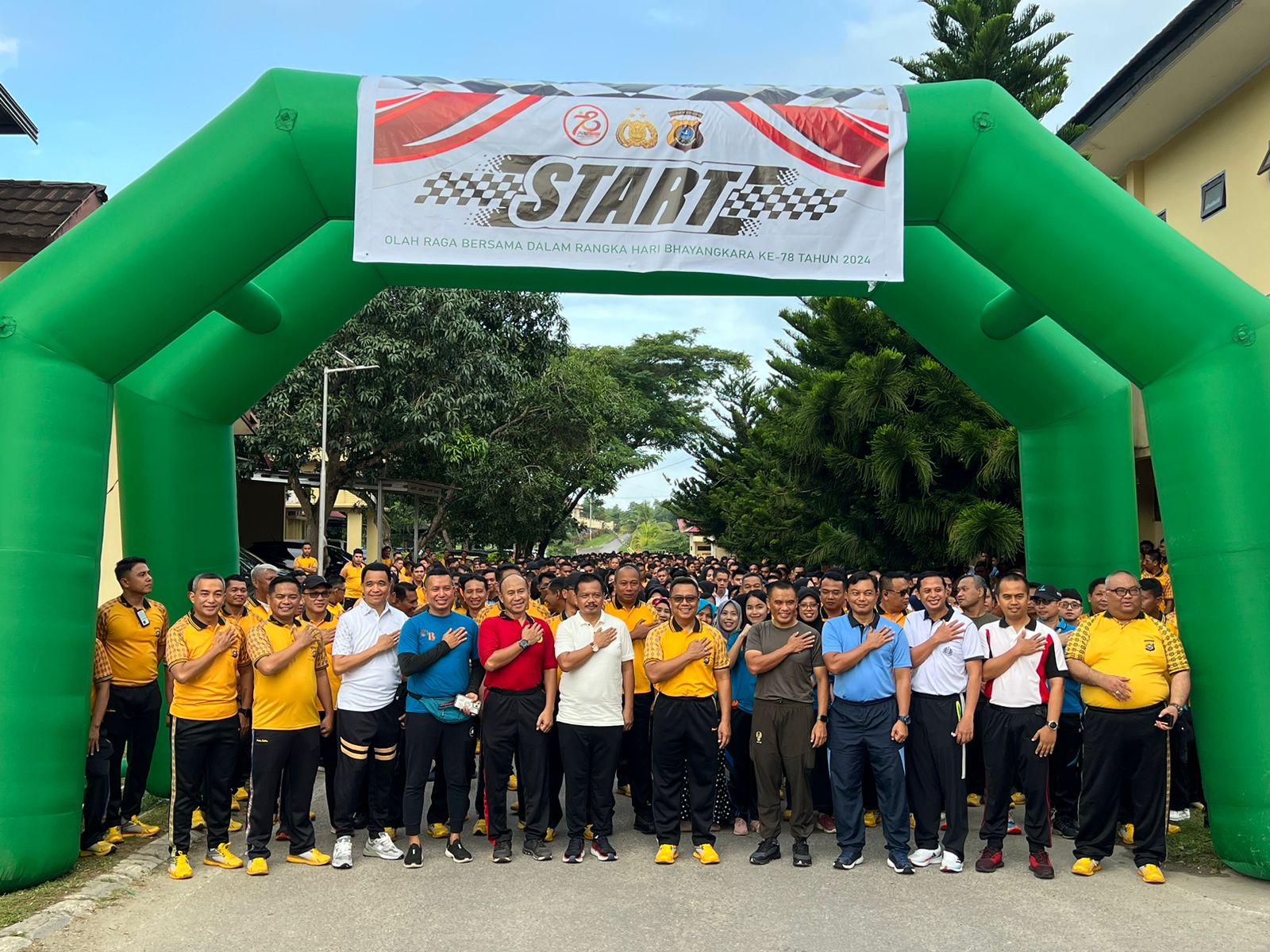 Semarak HUT Bhayangkara ke-78, Polda Sultra Gelar Olahraga Bersama Forkopimda