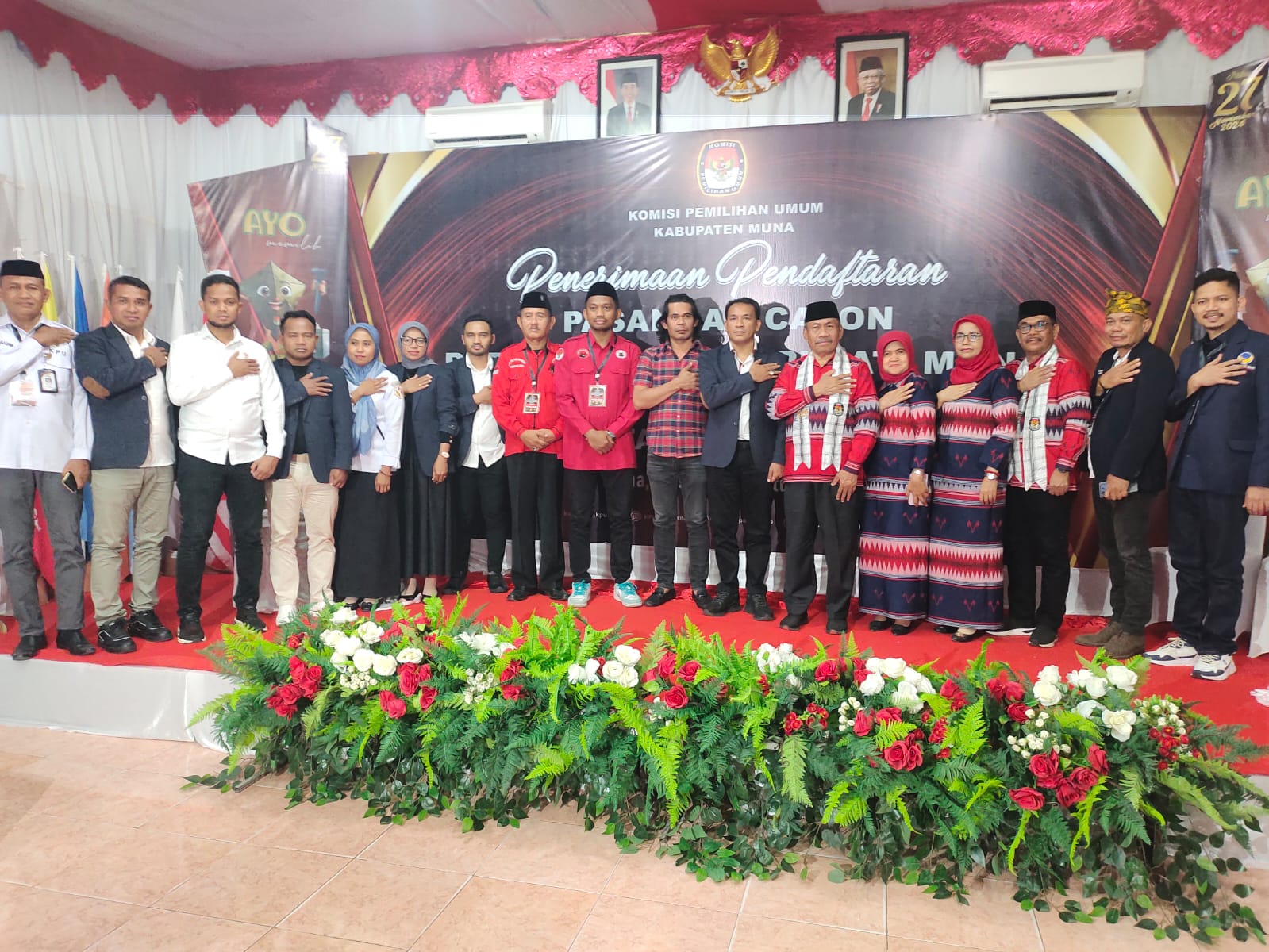 “Alhamdulilah hari ini kami sudah mendaftar di KPU Muna dan Berkas sudah dinyatakan lengkap. Selanjutnya, kami akan mengikuti tahap pemeriksaan kesehatan,” jelasnya.