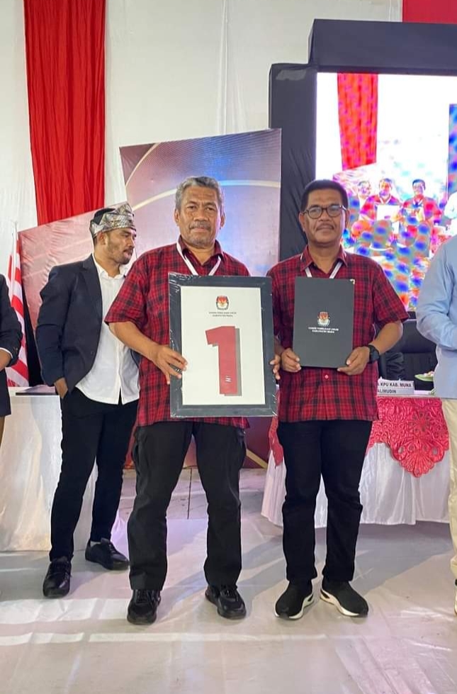 Raha, Sinarsultra.com- Pasangan Calon Bupati dan Wakil Bupati Muna Bachrun – Asrafil ditetapkan sebagai nomor urut 1 di Pilkada serentak 2024.