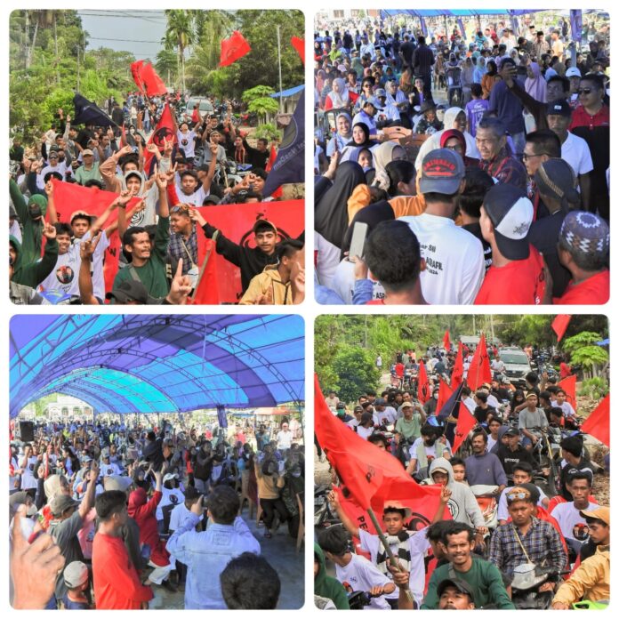 Raha, Sinarsultra.com- Masyarakat tumpa ruah saat menghadiri kampanye pasangan calon bupati dan wakil bupati Muna, Bachrun, M.Si dan La Ode Asrafil di Desa Wakobalu Agung, Kecamatan Kabangka, Kabupaten Muna, Selasa 1 Oktober 2024.