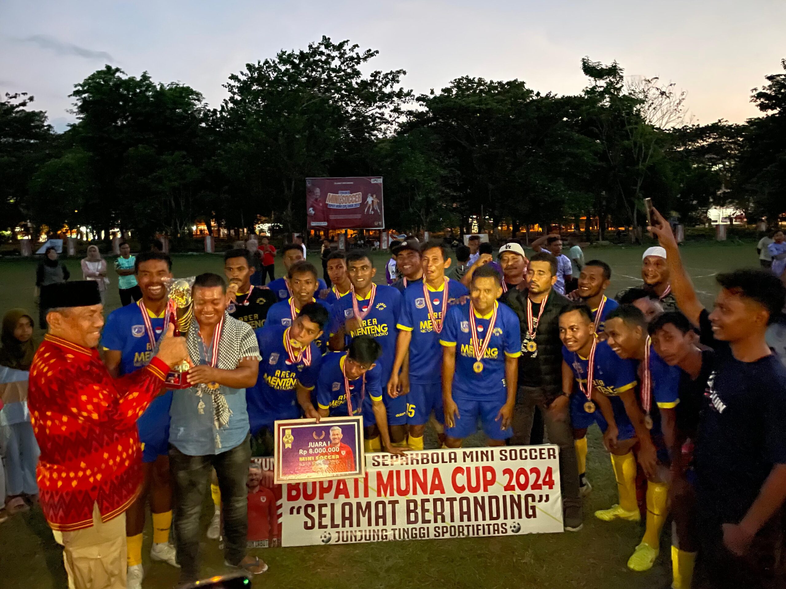 Adapun juara 1 turnamen mini soccer bupati cup 2024, Bata Laiworu FC, selain mendapatkan trophi juga memperoleh uang pembinaan sebesar Rp 8 juta.