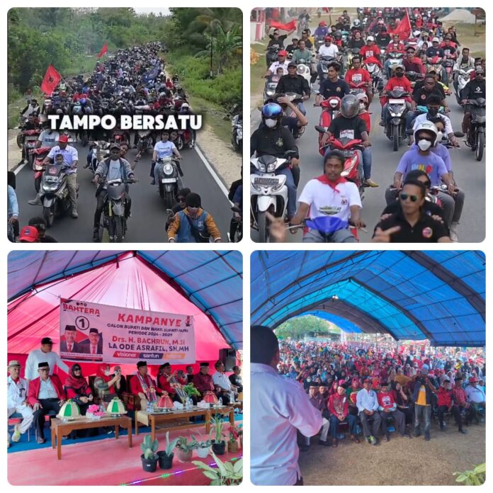 Antusias masyarakat yang hadir di kampanye pasangan nomor urut 1 dengan akronim “BAHTERA” itu, sudah terlihat sejak ratusan kendaraan roda dua mulai dari desa Lambiku sampai di Kelurahan Tampo mengantarkan kedua pasangan ini ke titik kampanye.