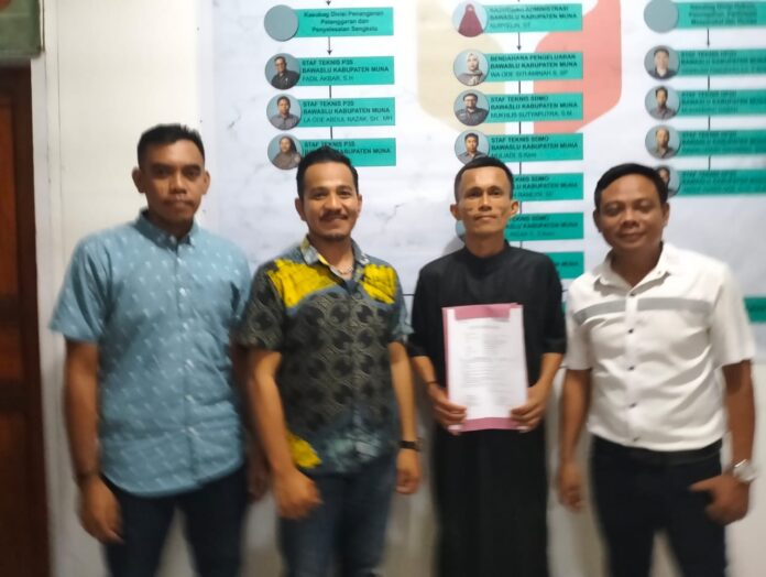 Pelapor, Mukmin Arrozaq didampingi Tim Hukum Bahtera, Muh. Saddam Safa dan Hendra Jaka, menyampaikan bahwa Paslon Rahmatnya Muna diduga melakukan kecurangan yang terstruktur sistematis dan masif, namun hasilnya kalah telak.
