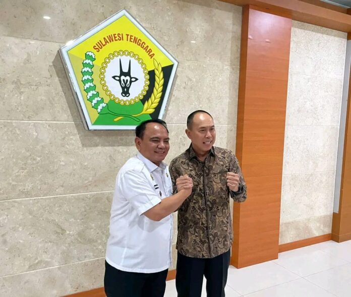 Kendari, Sinarsultra.com – Penjabat (Pj) Gubernur Sulawesi Tenggara (Sultra), Andap Budhi Revianto, menerima kunjungan silaturahmi Gubernur Sultra terpilih periode 2025-2030, Andi Sumangerukka, bertempat di Kantor Gubernur Sultra, pada Kamis 6 Februari 2025.
